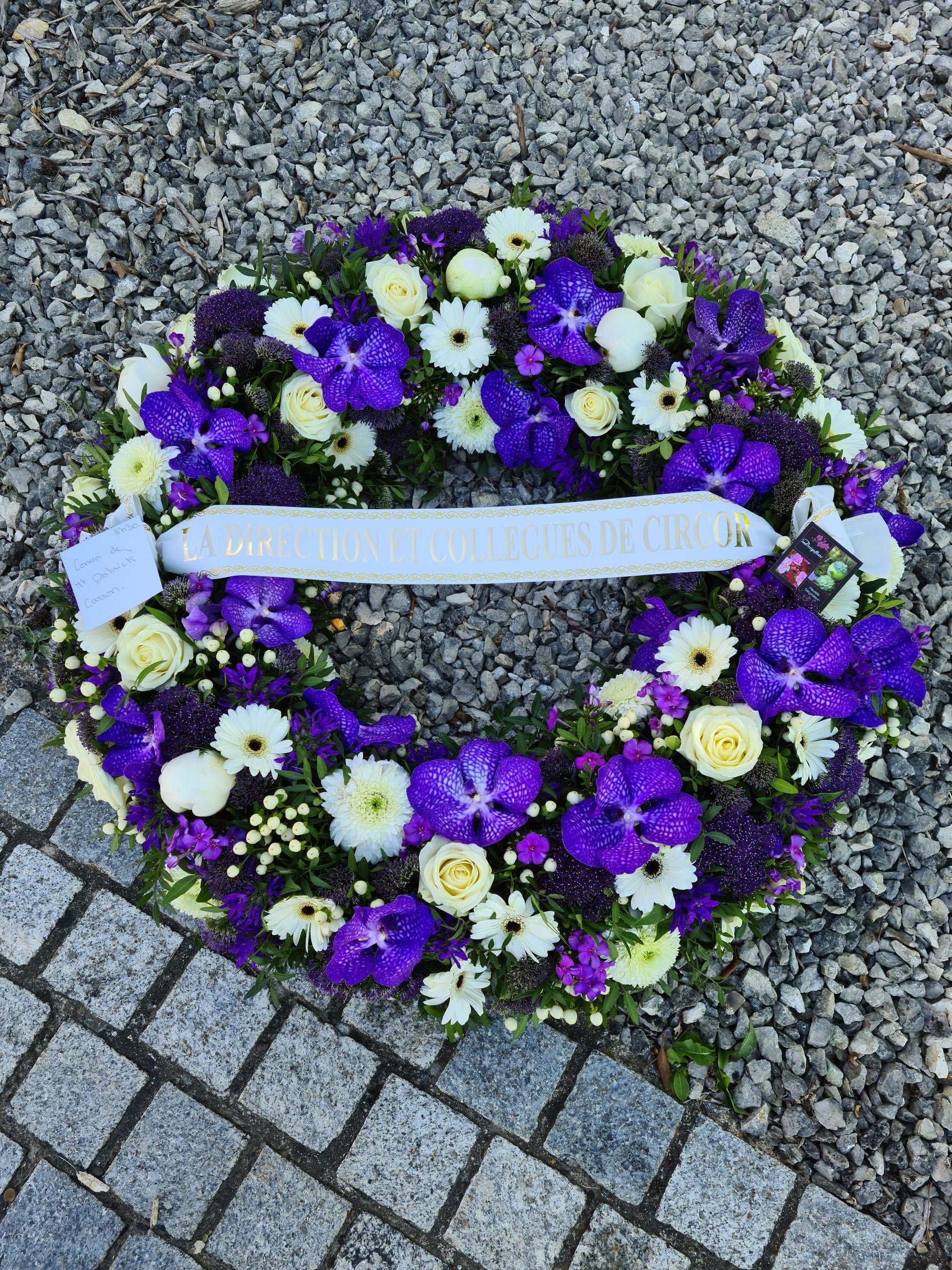 La couronne est une pièce de deuil réalisée avec différentes variétés de fleurs fraîches. Celle-ci sont piquées dans de la mousse imbibée d'eau.